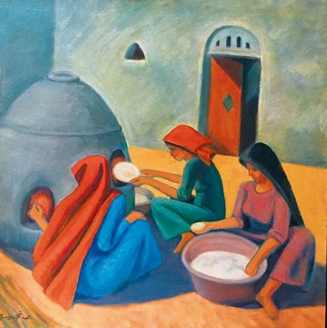 - إذاً، ما التأثير المباشر من تجاربك على هذا المعرض، الذي تتراوحُ فيه الأعمالُ ما بين مناظرَ طبيعيةٍ وتشخيصٍ لحياة البشر، لا سيما في مناسباتهم المعيشية والحياتية المختلفة، مثل صنع العيش، وكذلك نلمحُ في معرضك الوجوهَ المنطلقة الحالمة بمستقبلٍ أفضل؟