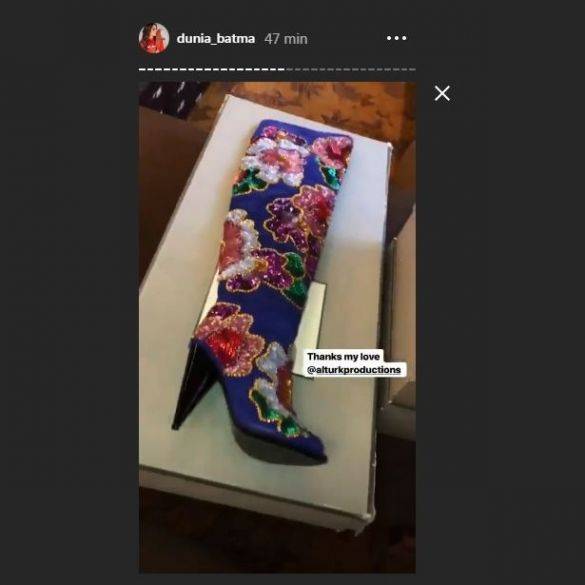 نشرت الفنانة المغربية دنيا بطمة، عبر خاصية "ستوري" على حسابها على "إنستغرام"، صورة لحذاء بتصميم غريب.
