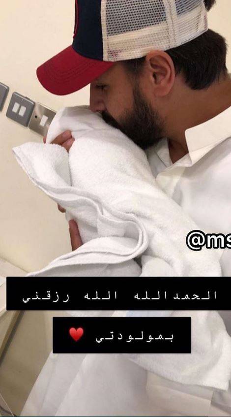 كذلك تناقل الناشطون صورة له وهو يحمل طفلته ويقبلها من دون أن يظهر وجهها مع التعليق: "الحمدالله الله رزقني بمولودتي".