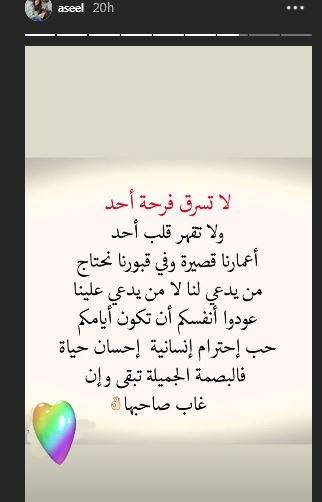 ثم عادت ونشرت منشوراً مكملا لغضبها ودفاعها عن الألفي وكتب فيه "لا تسرق فرحة أحد ولا تقهر قلب أحد. اعمارنا قصيرة وفي قبورنا نحتاج من يدعي لنا لا من يدعي علينا. عودوا انفسكم ان تكون ايامكم حب احترام انسانية إحسان حياة. فالبصمة الجميلة تبقى وإن غاب صاحبها.