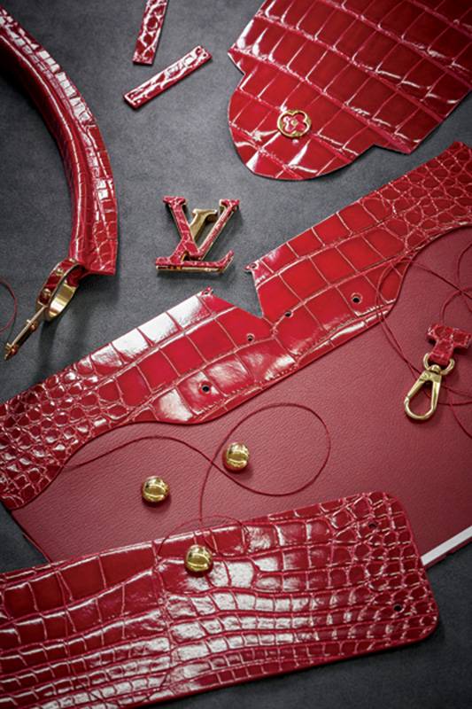 تستخدم دار لويس فويتون Louis Vuitton أرقى أنواع الجلود لابتكار أكسسواراتها المميزة. ولا شك في أن جلود التماسيح هي جلود نفيسة ومميزة تتطلب براعة حرفية دقيقة موجودة لدى حرفيي لويس فويتون. فابتكار حقيبة واحدة من جلد التمساح يتطلب مراحل عدة، وساعات طويلة، ومعالجة دقيقة بحيث يقول الحرفيون العاملون في الدار إن صناعة الحقائب من الجلود النفيسة هي بمثابة مغامرة جريئة تستلزم الكثير من الخيال والإبداع.