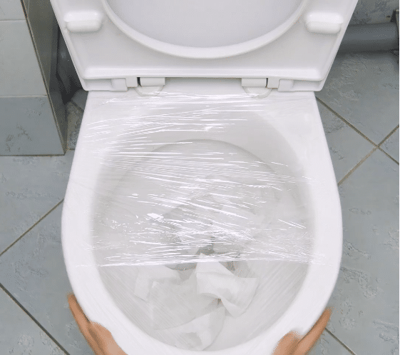ويحتاج تنفيذها إلى شريط نايلون لاصق (مخصص لحفظ الطعام). فإذا حدثت المشكلة في كرسي المرحاض مثلاً ينصح بلفه بالشريط جيداً حتى يغطي مساحة سطحه تماماً.