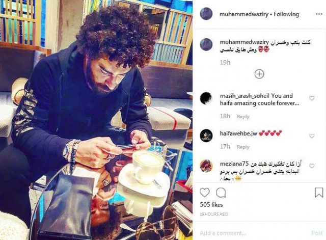 اثار محمد وزيري ضجة كبيرة بصورة جديدة نشرها عبر صفحته على تطبيق انستغرام وبدا فيها منهمكاً بهاتفه، ويستعرض شعره الكيرلي الذي يميزه ويمنحه ملامح خاصة وجذابة.