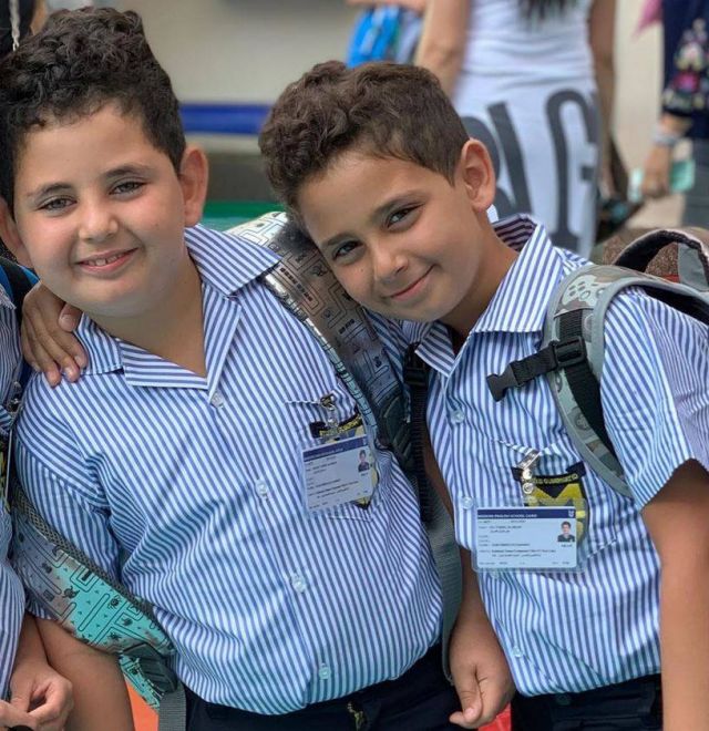 أشعلت شام الذهبي، إبنة الفنانة السورية أصالة، مواقع التواصل الاجتماعي، بنشرها الصور الأولى لعودة أخويها علي وآدم إلى المدرسة.