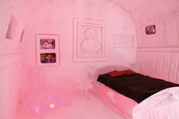 «فندق الجليد» هو الفندق الوحيد من نوعه في أميركا الشمالية. شُيد بخمسة عشر ألف طن من الثلوج و500 طن من الجليد. فيه 19 قدمًا من الأسقف والأثاث المنحوت في قوالب الجليد.
