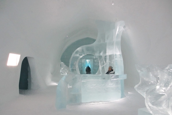 يجذب الفندق هذا العام 140 ألف نزيل بفضل الـ 36 غرفة المنحوتة يدويًا لكل واحدة موضوع. عند بهو الإستقبال شمعدانات من الجليد مضاءة بواسطة الألياف البصرية. وفي المقهى، يجلس الضيوف على كراس من الجليد مدثرة بالفرو يرتشفون الشوكولاته الساخنة.