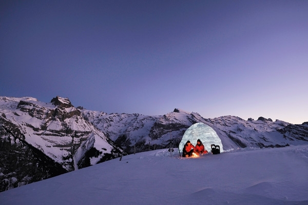 استمتع بنظرة خاطفة لمشاهد الألب السويسرية حين تزركش النجوم ديجور الليل الدامس، ما يجعل قرية إيغلو فريدة من نوعها. بنت القرية شركة إيغلو دورف التي تبني قرى مشابهة في أرجاء سويسرا.
