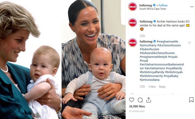 ونشرت لذلك صورة تعود إلى العام 1985 التقطت للأميرة الراحلة ديانا وهي تحمل ابنها الأصغر أثناء زيارة قامت بها الأسرة لإيطاليا ولوحظ من خلالها ان الطفل يكاد يكون نسخة عن والده.