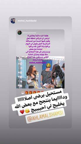 بدوره. سارع الشاب للرد على معايدة أحلام شاكراً اياها واصفاً اياها بالاخت والصديقة، وبأنه في غاية السعادة والفخر لانه من ضمن فريق احلام الخاص الذي يهتم باطلالاتها في مختلف حفلاتها ومناسباتها الخاصة.
