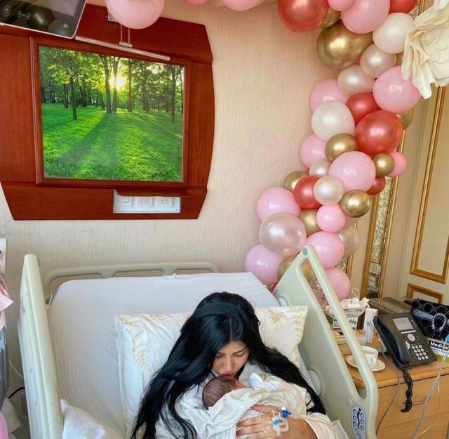 وبدت في الفيديو الذي نشرته أولاً على حسابها على "سناب شات" وهي تستلقي على السرير النقال فيما يقف زوجها إلى جانبها ويهنئها بالسلامة.