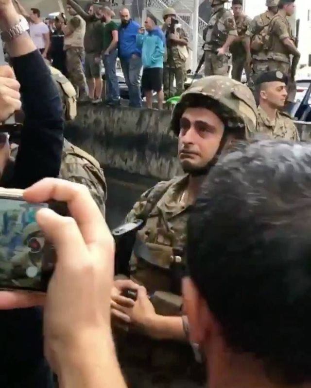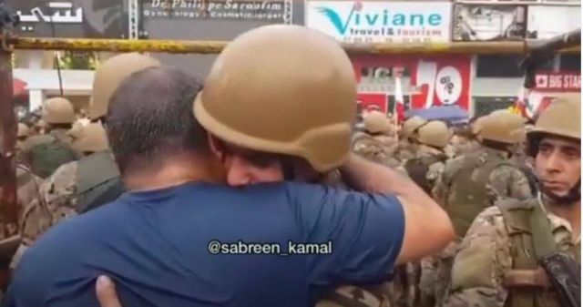وظهر في المقطع جندي من الجيش اللبناني وهو يعانق أحد المتظاهرين ليتبين أنه والده. كما بدا جندي آخر وهو يبكي تأثراً.