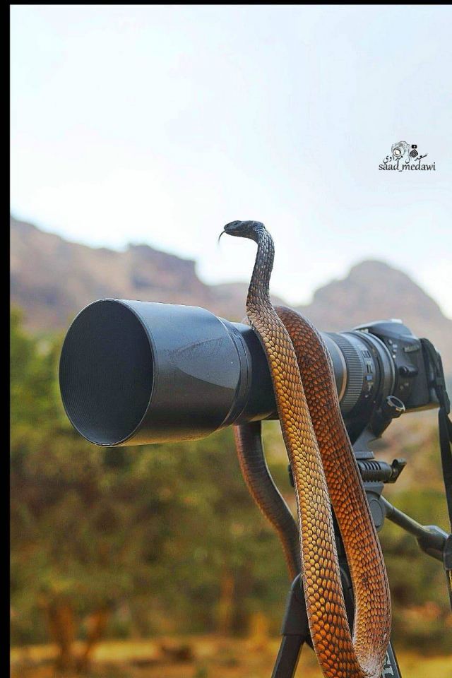 غامرة خطرة عاشها مصور سعودي مهتم بالحياة الفطرية، وذلك أثناء التقاطه "بورتريه" لأفعى الكوبرا السامة عندما غافلته بحركة سريعة، وقفزت على الكاميرا الخاصة به.