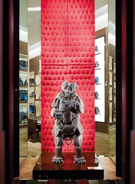 لا شك في أن دار Vuitton لا تستطيع عكس روح برشلونة من دون تقديم التحية إلى أحد أشهر المهندسين المعماريين فيها- أنطوني غاودي. لذا، ابتكرت الفنانة البريطانية بيلي أشيليوس منحوتة للمتجر، مستوحاة من السمندل الشهير في بارك غويل من تصميم المهندس غاودي. والواقع أن الفنانة بيلي تملك سيرة ذاتية مذهلة، وهي موهبة تستحق التوقف عندها. تعاونت مع Vuitton خلال الأعوام الثلاثة الماضية، وابتكرت مجموعة حيوانات باستعمال حقائب وبضاعة جلدية صغيرة من مجموعات الدار.