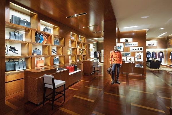 من خشب الساج الدخاني اللون إلى رفوف العرض الأنيقة، تفيض مساحة الرجال بالإيحاءات المأخوذة من نوادي الرجال. «حاولنا ابتكار عالم للرجال بحيث يكون كل شيء، من الأكسسوارات والأقمشة والأربطة والنظارات الشمسية، قريباً جداً لكي يراه الرجال فوراً»، يشرح روبرتو إيغس، رئيس Louis Vuitton في جنوب أوروبا.