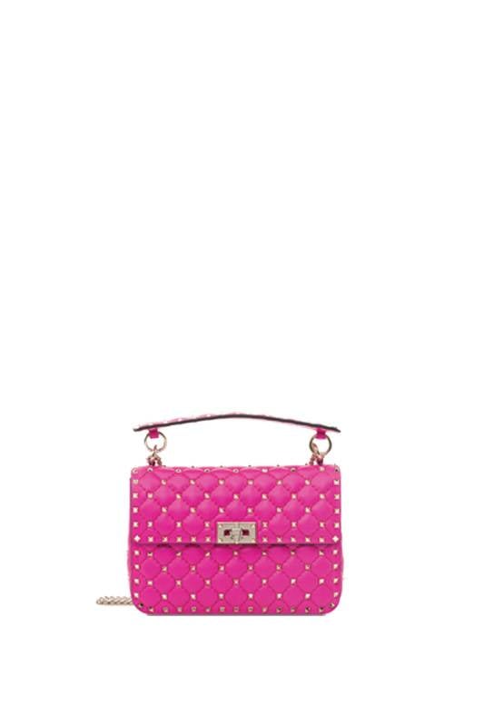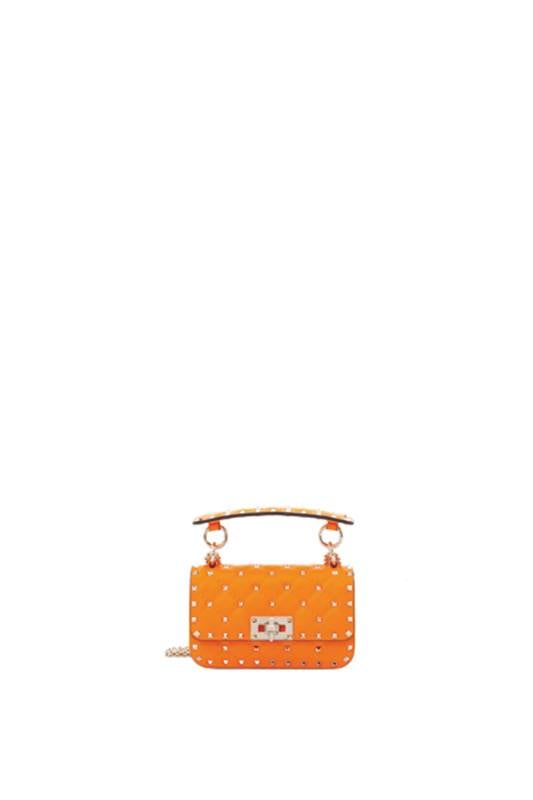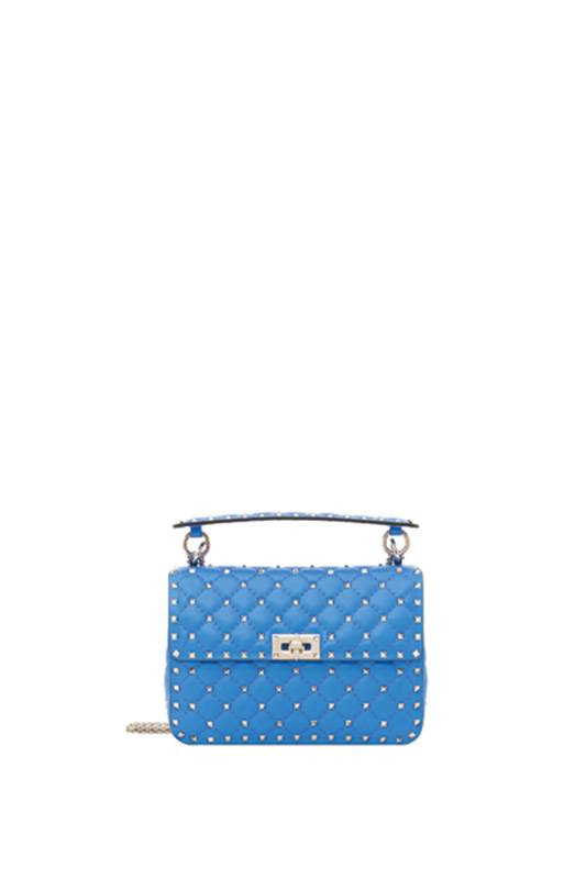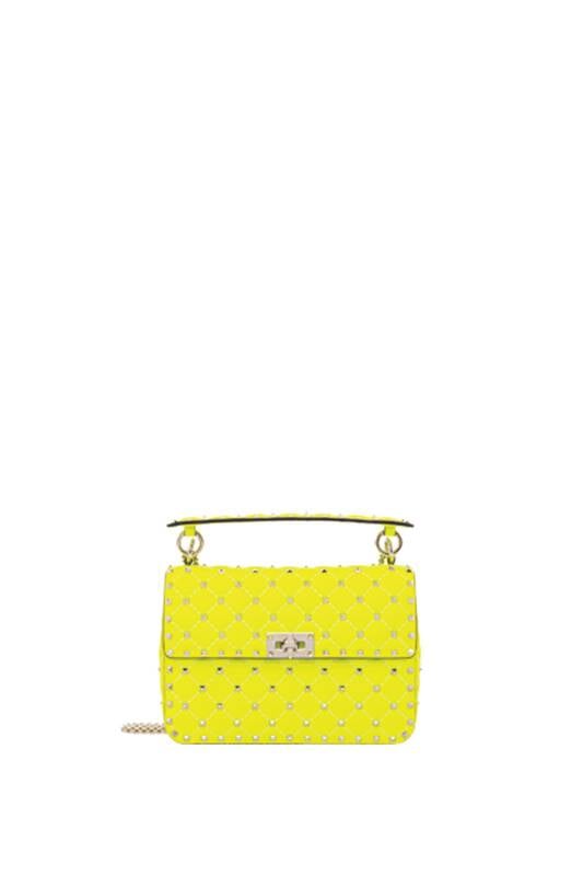 و تتميّز حقيبة "فالنتينو غارافاني روكستاد سبايك" Valentino Garavani Rockstud Spike بالجلد المضرّب بمهارة حرفيّة استثنائية الذي يتزيّن بمسامير معدنية، وتمّ إضفاء لمسة متجدّدة عليها من خلال مجموعة الألوان الفلورية الجديدة: الأخضر، الأصفر، البرتقالي، الزهري والأزرق الفاتح،