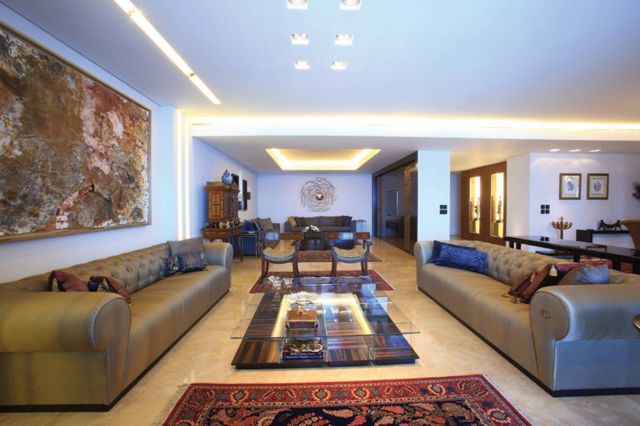 على خليج بيروت تطلّ هذه الشقّة السكنية في أحد المباني الفخمة العصرية في قلب العاصمة. في رحاب هذه المساحة التي تمتد على 540 متراً تبدأ رحلة اكتشاف فنّ هندسي راقٍ للمهندسة مايا الترك بكلّ المقاييس الهندسية حيث للنحت والرسم حيّز كبير من الغنى الثقافي والفنّي الراقي.