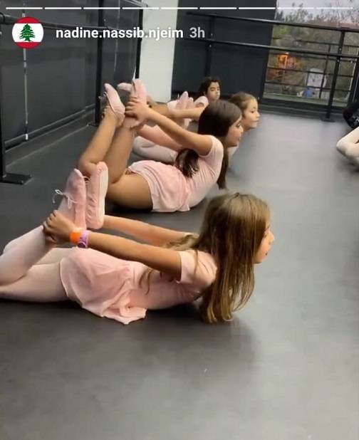 شاركت الفنانة نادين نسيب نجيم متابعيها عبر خاصية الستوريز على تطبيق انستغرام بصور لابنتها هافن خلال ممارستها لتدريبات أولية في رقص الباليه.