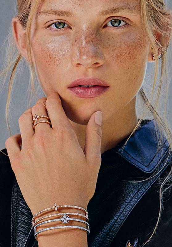 تتميّز مجموعة مجوهرات إيديل بلوسوم من لويس فويتون بقصة جديدة مرصعة بالألماس. تتزيّن أزهار نقشة الشعار، التي تُعدّ العلامة الأيقونية للويس فويتون منذ عام 1986، بالألماس، الأمر الذي يخلق خطاً جديداً يتميّز بكونه ثميناً وأنيقاً على حدٍّ سواء ويمكن ارتداؤه كل يوم لمظهر ملؤه الأنوثة والخفة. يمكن استخدام الخواتم والأساور المكونة من صفين ضمن مجموعات أو بمفردها. وتأتي كل زهرة من أزهار نقشة الشعار بلون من الذهب سواء الوردي أو الأصفر أو الأبيض، يتداخل معها الألماس لإنشاء قطع تنضح أنوثة. إضافة إلى ذلك حلق من سلسلة أحادية فريد من نوعه يُضفي على المجموعة شكلاً حيوياً وعصرياً.