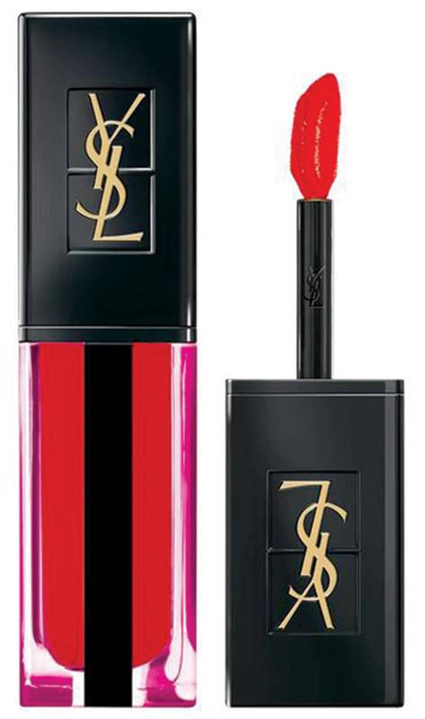 غلّفي الشفتين بأحمر الشفاه Water Stain بلون 618 Wet Vermillon من YSL للحصول على شفتين ممتلئتين وجذابتين.