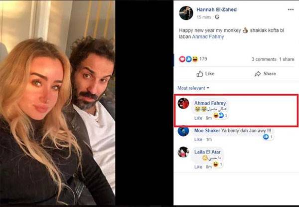 وأحدثت ضجة بتعليقها عليها حيث كتبت: "كل سنة وانت طيب يا قردي. شكلك كفتة باللبن" ليرد عليها: "شكلي متسول".
