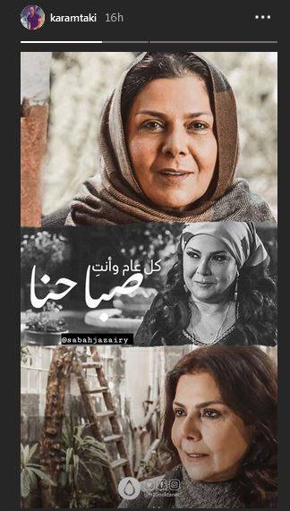 كذلك نشر عبر خاصية الستوريز على تطبيق انستغرام وكتب عليها "كل عام وانت صباحنا". واكملها بصورة للفنانة القديرة التي بدت فيها بغاية التألق والجمال.