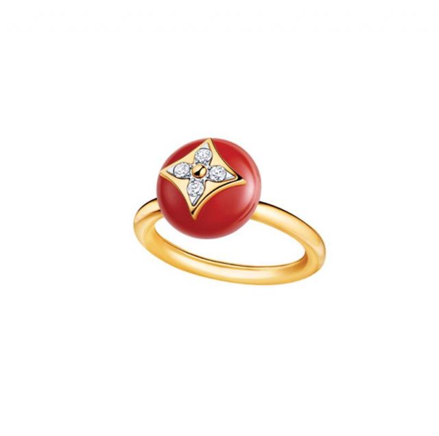خضعت نقشة الزهرة المميزة على شكل نجمة والتي صمّمها جورج لويس فويتون عام 1896 إعادة تصميم وتصوّر على شكل طابع كروي أنيق يمزج بين الطابع القوي اللعوب. وقد أُضيفت إلى المجموعة أحجار الألماس لإعطائها مزيداً من التميّز فتسطع مجموعة الخواتم والأساور وأزرار الأكمام والأقراط والعقود والقلائد برسم الزهرة المميزة الجديد في أشكال تتغنّى بالمصفوفة الثمينة التي تُضفي إمكانات ما بعدها إمكانات على رسم النقشة إلى ما لانهاية. وتجدر الإشارة إلى أنّ مجموعة المجوهرات هذه تأتي بالذهب الزهري والأصفر على حدٍّ سواء. وُضع هذا التصميم الجديد لزهرة لويس فويتون الشهيرة لصالح مجموعة "ترايب" من لويس فويتون، ويمكن رؤيتها في كامل مجموعة المجوهرات الراقية باعتبارها ختماً لشعار عصري. وقد أضاف كلّ من عناصر الذهب والأحجار الكريمة والألماس رقيّاً وضخامة إلى القطع فأعادت تعريف الختم وتأثيره على تراث الدار. بالتالي، ترتدي امرأة لويس ڤويتون القوية والجريئة هذه القطع الجميلة والتي