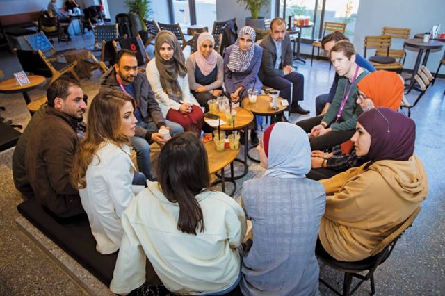 إلتقت الملكة رانيا المشاركين في منحة تدريبية على تطوير البرمجيات مقدمة من مؤسسة الملكة رانيا للتعليم والتنمية ومؤسسة الغرير في عمان.