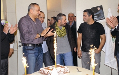 حضر الوسوف واضعاً الكوفية الفلسطينية حول رقبته ثم أزالها ولفّها حول عنق فضل من باب المزاح على أساس أنها هدية العيد، فقبلها فضل مبتسماً وقبّل جبين الوسوف.
