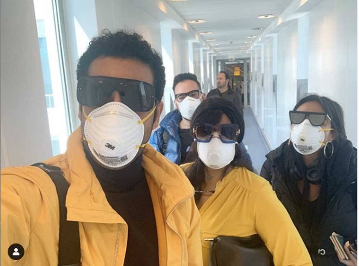 عمرو سعد وفيفي عبده وسارة الطباخ بالكمامات