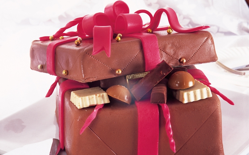 تغطى علبة الشوكولا بالغطاء على نحو نصف مائل ثم تحفظ في الثلاجة حتى موعد التقديم.