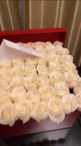 وشاركت الهدية مع متابعيها وهي عبارة عن صندوق مليء بالورود البيضاء مع رسالة وذلك من دار "كارتييه" المتخصصة في تصنيع المجوهرات وساعات اليد.