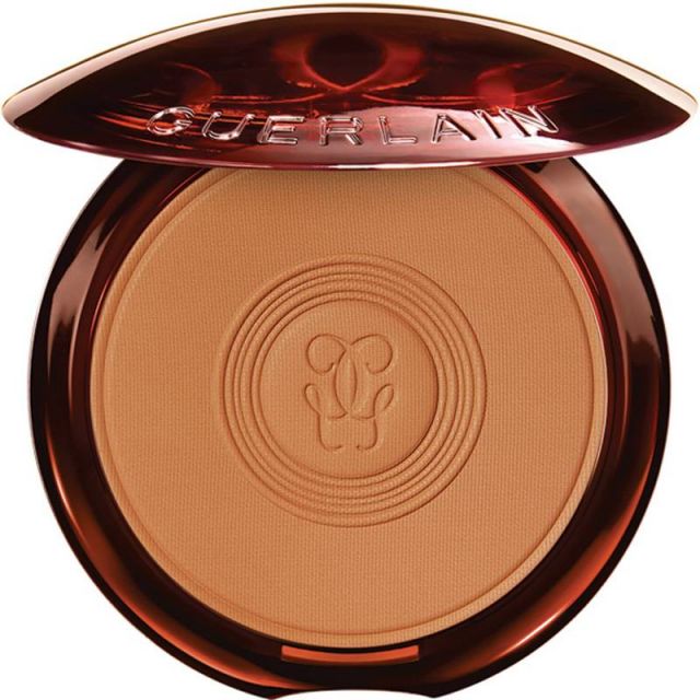 إنحتي الوجنتين بواسطة بودرة الوجنتين Terracotta Matte Sculpting Powder بلون Moyen من Guerlain. أضيفي بعض الإشراق إلى وجنتيك بواسطة Sheer Healthy Glow Highlighting Fluid بلون Sunkissed من CHANEL.