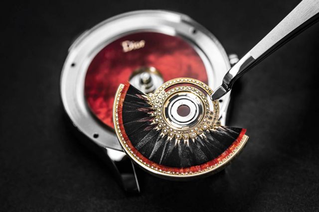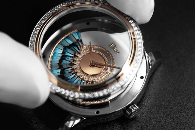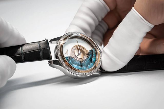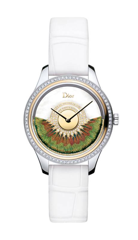 حظيت مجموعة الساعات الراقية "ديور غران بال" DIOR GRAND BAL بإصدارات جديدة لساعات رائعة بقطر 36 ملم مشغولة بمزيج مفاجئ من المواد الطبيعية والثمينة. ويلفت الوزن المتأرجح المزيّن بريش بريّ مفعم بالألوان، وهو ينعش نعومة قرص الساعة المصنوع من عرق اللؤلؤ الأبيض المتقزّح، والمعزّز بالذهب والألماس المرصّعين على الإطار الخارجي. تتميّز ساعة "ديور غران بال" طراز "الريش" Dior Grand Bal Plume بنظام حركة أوتوماتيكيّ حصري لدار ديورDior، عيار ½Dior Inversé 11، وهو يتميّز بوزن متأرجح مسجّل ببراءة اختراع يُعيد إلى الأذهان تأرجح فساتين الحفلات الراقصة. تجمع هذه الساعات بين المهارة الحرفية لفن صناعة الريش، الذي نجده في التصاميم المترفة "أوت كوتور”، وبين تكنولوجيا صناعة الساعات الحديثة، وقد تمّ تصميم الميناء بدقّة لامتناهية، وهو أشبه بتنورة تحتيّة مرصّعة بالألماس مع ريش طبيعي نادر. الساعات متوافرة بإصدار محدود من 88 ساعة فقط.