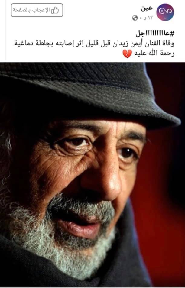 تناقل عدد من الحسابات الناشطة على مواقع التواصل الاجتماعي خبراً أشار إلى وفاة الفنان السوري القدير أيمن زيدان بعد إصابته بجلطة دماغية. وهو ما دفعه إلى الرد بنفسه من خلال حسابه على "فيسبوك" حيث أعاد نشر الخبر وأرفقه بالتعليق: "لا أدري ماذا يستفيد الصغار مروجو الإشاعات السخيفة. أقل ما يقال إنه شيء معيب وفأل سيء. أنا بخير".