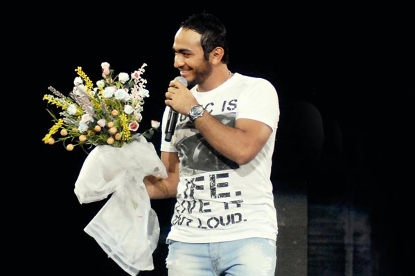 وقام مساعدو تامر، قبل الحفل، بتوزيع أعداد كبيرة من البوسترات التي تحمل صوره.