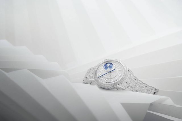 تسلّط مجموعة "فاشرونكونستنتان" النسائية الجديدة الضوء على براعة المجوهرات، حيث يتألق وقت ساعتها المجوهرة "إيجيري مون فايز جولري" بشلال من الماس.