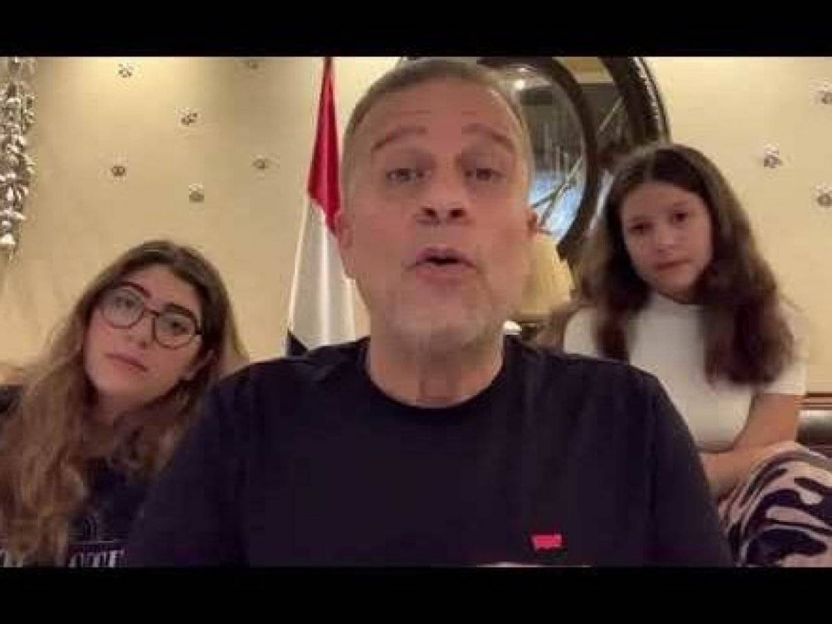 شريف منير وابنتاه وعلم مصر