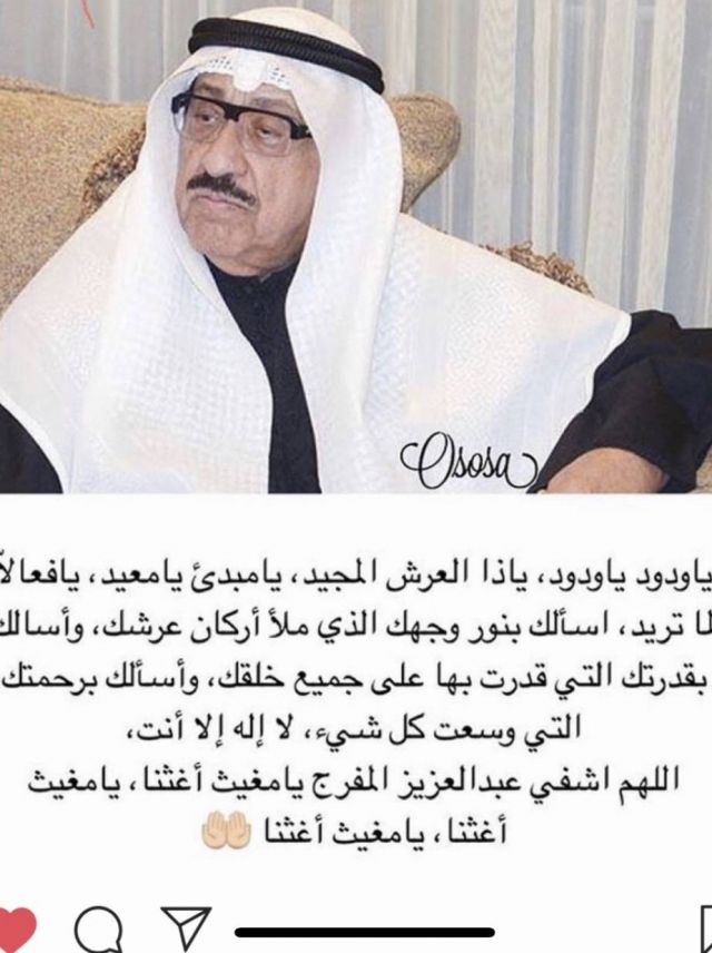 وأشارت في تغريدة سابقة إلى أنه فقد الوعي وكتبت: "أليس ذلك بقادر على أن يُحيي الموتى؟ اللهم أعد الوعي لبابا عزيز المفرج الغالي واحفظ بابا صباح". كما نشرت خلود المفرج صورة لوالدها مع التعليق: "اللهم ألبسه ثوب الصحة والعافية عاجلاً غير آجلاً".