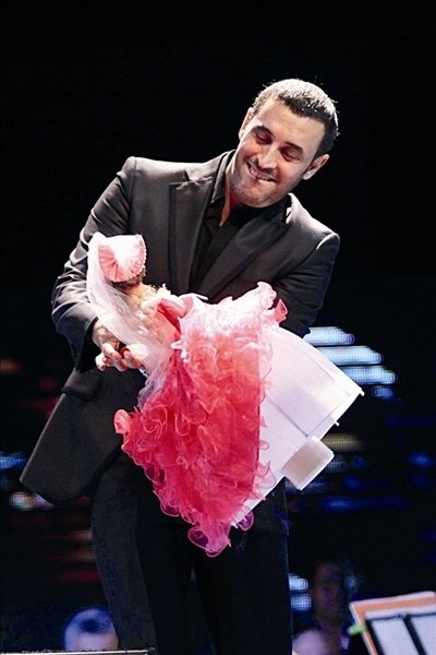 وبعد فقرة نانسي صعد كاظم الساهر على المسرح مهنئاً المنتخب المصري بالفوز، وبمجرد انتهائه من أول أغنية تلقى عشرات الهدايا من المعجبات، وصعد مواطن عراقي الجنسية إلى المسرح وأهدى الى كاظم علم العراق، فرفعه كاظم إلى أعلى.