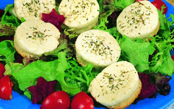 يقطع رغيف الخبز الفرنسي إلى شرائح، وتخبز هذه الشرائح لمدة ٥ دقائق في فرن محمى مسبقاً إلى حرارة ٤٠٠ درجة فهرنهايت. توزع جبنة الماعز على شرائح الخبز قبل إدخالها مجدداً إلى الفرن لمدة ٧-١٠ دقائق حتى تذوب الجبنة.