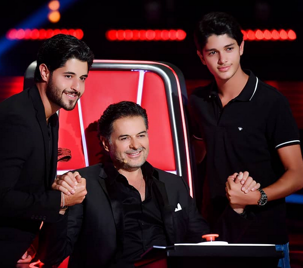 راغب علامة متوسطاً ولديه لؤي وخالد