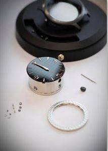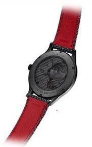 تكمن جاذبية هذه الساعة في اتساق ألوانها؛ فتبدو كصورة ظلية سوداء جميلة نحتت بمهارة من تدرجات اللون الرمادي لسوار الساعة وميناءها وعلبتها المصنوعة من الستيل المصقول بتقنية ضخ الحبيبات والمطلي بمادة (DLC) (علماً أن هذه المادة عبارة عن كربون شبيه بالألماس).