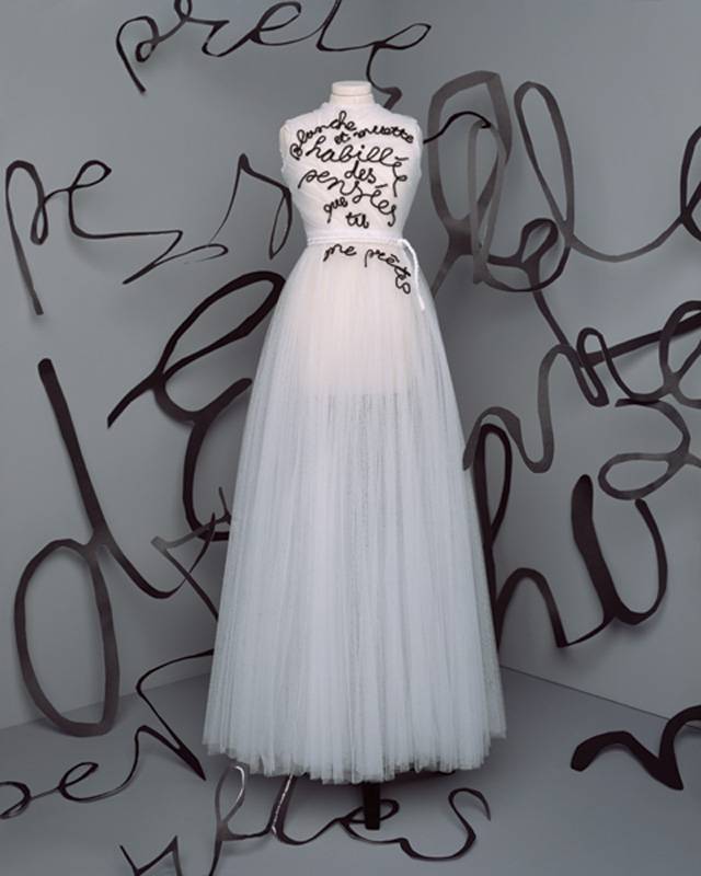 كما لعبت مشاغل "ديور" Dior دوراً بارزاً في تلك المغامرة. ابتداءً من "الإطلالات النهارية" للتصاميم الراقية، مع بذلات مصنوعة من الأقمشة المخصّصة للرجال مع هندسة استثنائية تجسّد إنجازاً غير مسبوق، مع ابتكار تصاميم مصغّرة بمهارة حِرفيّة متقنة. يكشف المعطف عن طبقات مكسّرة. تقنية الـ"درابيه" تذكّرنا بالتماثيل القديمة. يعزّز الإشراق اللمسات اللونية الرمادية والذهبية الصفراء، ويمنحنا تألّقاً يسحر الألباب.