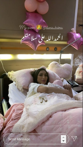 وضعت الفنانة المغربية دنيا بطمة ابنتها الثانية من المنتج البحريني محمد الترك الذي نشر صور سرير زوجته والتحضيرات الزينة الخاصة باستقبال المولودة الجديدة.