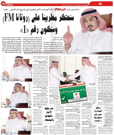 بعد أن افتتحت شركة روتانا المحطة الإذاعية الجديدة الخاصة بها في السعودية بإسم «روتانا اف ام»، سرت أخبار مفادها أن الشركة أرسلت إنذاراً إلى محطة «إم بي سي إف إم» و«بانوراما» (التابعة بدورها لمجموعة ام بي سي) تطالب فيه بوقف بثّ كل الأغنيات التي أنتجتها وتنتجها روتانا، وذلك كي تحتفظ الشركة بحق الحصرية في بثّ الأعمال التي تنتجها. وكان السيد نزار ناقرو مدير قسم الخدمات الإعلانية في روتانا، قد أجرى حواراً في جريدة الرياضي السعودية بعد افتتاح إذاعة «روتانا اف ام»، وقال فيه «سنحتكر كلّ أعمالنا والحصرية ستكون لنا في ما يخصّ مطربينا وكل إصدار جديد لأي مطرب في روتانا لن يُطرح إلاّ على قنواتنا وإذاعتنا فقط».