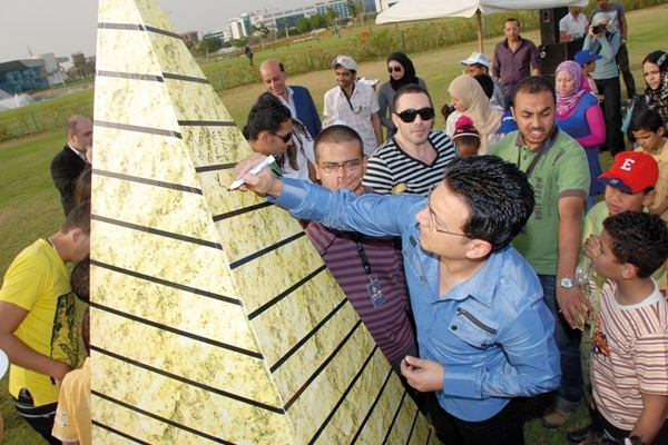 بالتعاون مع جمعية «ينابيع الحياة» المصرية ضمن الحملة القومية الشبابية للتوعية بأهمية التبرّع بالدم، شاركتّ الفنانة منى زكي (سفيرة جمعية «ينابيع الحياة») وعدد من النجوم المصريين، في الدعوة التي تم توجيهها إلى الإعلامية الأميركية أوبرا وينفري لزيارة القاهرة وحضور اليوم العالمي للتبرّع بالدم في الرابع عشر من شهر حزيران/ يونيو المقبل تحت سفح الهرم. ووقّع الحاضرون والمشاركون في الحلقة على بطاقة الدعوة العملاقة على شكل ثلاثة أهرامات مصنوعة من الفلّين، التي سيتم إدراجها ضمن موسوعة «غينيس» كأكبر بطاقة دعوة في العالم.