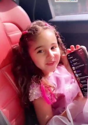وخطفت الطفلة يسمى الأنظار بجمالها وبطرافتها في اللعب والحديث، إضافة الى اناقتها بالفستان الذي يشبه أميرات ديزني، ولاحظ العديد من المتابعين الشبه الكبير بينها وبين والدتها.
