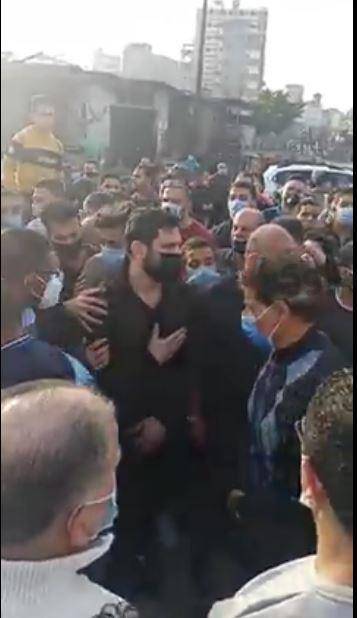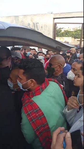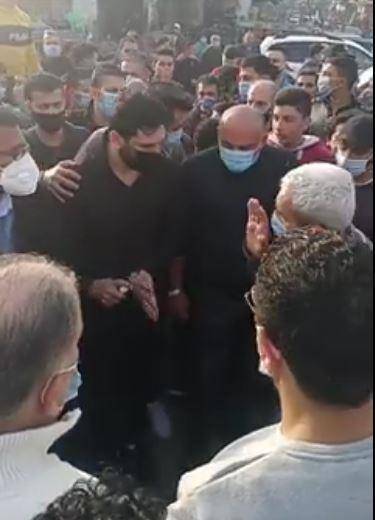 وظهر الرداد وهو يحمل نعش والدته على كتفه ومن دون أن يصافح المعزين، مكتفياً باستخدام قبضة يده في تلقي العزاء وبوقوف شاب بالقرب منه يحرص على تعقيم يد الرداد بالكحول كلما صافحه أحد.