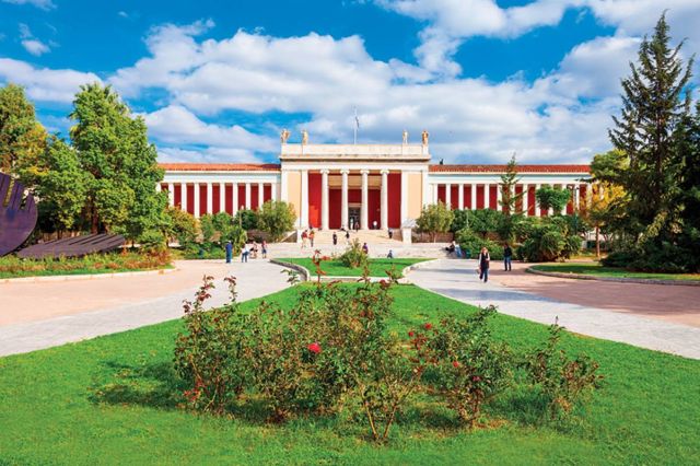 يعرض المتحف الوطني في أثينا التاريخ اليوناني منذ قديم الزمان، ومن فترة تمتد الى أكثر من 5000 سنة، بحيث يضم آلاف القطع الأثرية المكتشفة في مواقع مختلفة من اليونان. وتشتمل المعروضات في المتحف على المقابر الملكية، والتماثيل، والمجوهرات، والقطع الفخارية، ومن ضمنها زهريات وأوانٍ فخارية.