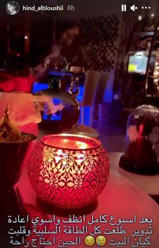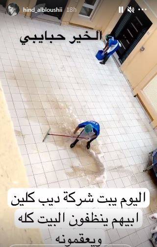 وكذلك نشرت مقطع فيديو وهي تعقم منزلها وكتبت قائلة: "بعد أسبوع كامل أنظف واسوي إعادة تدوير، طلعت كل الطاقة السلبية وقلبت كيان البيت الحين احتاج راحة".